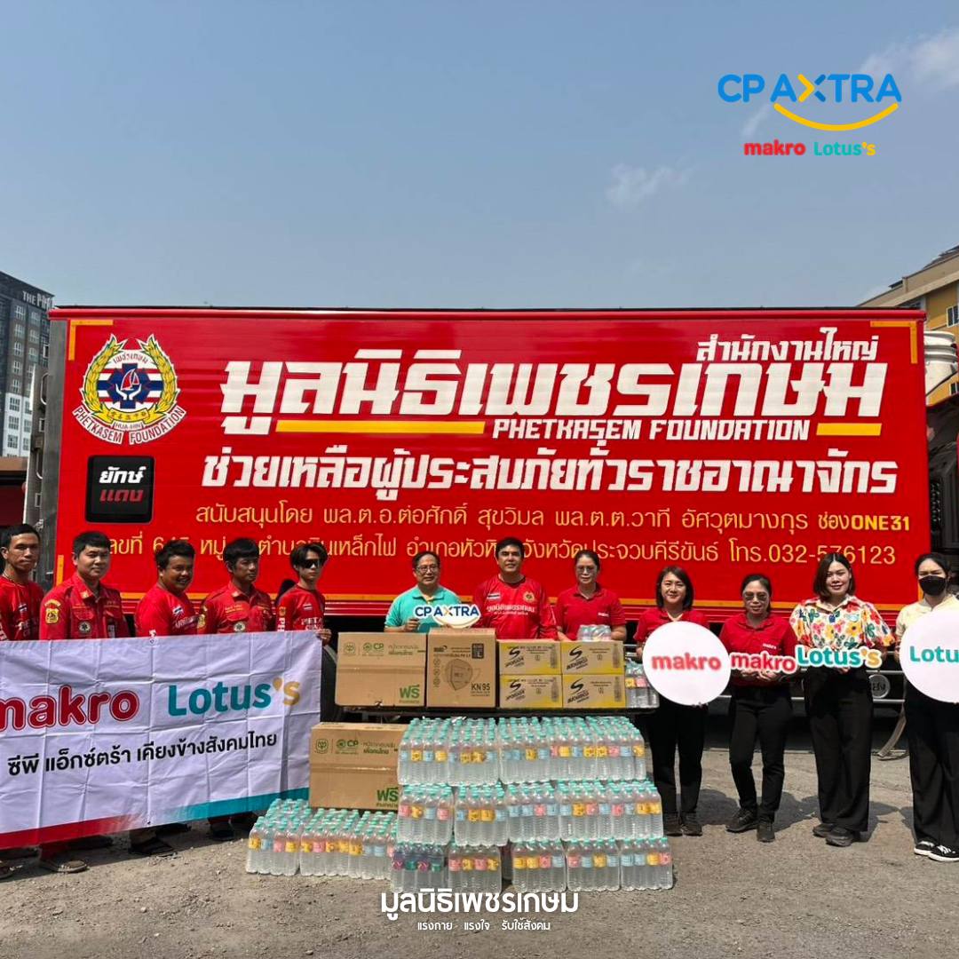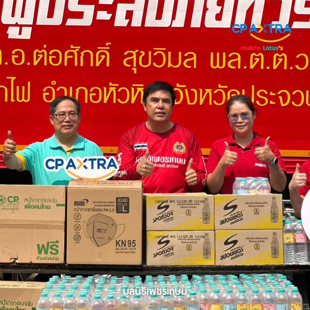 ทีมตอบโต้ภัยพิบัติ มูลนิธิเพชรเกษม ขอขอบคุณความห่วงใยจาก ซีพี แอ็กซ์ตร้า โลตัส และ แม็คโคร ที่ได้ร่วมสนับสนุนสิ่งของจำเป็นเพื่อเติมพลังให้กับเจ้าหน้าที่ในภารกิจดับไฟป่า พื้นที่จังหวัดเชียงใหม่ ประกอบด้วย: